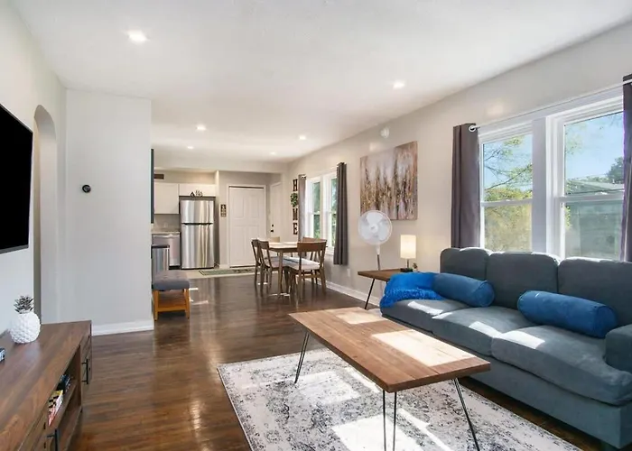 El encantador Villa Gorgeous Notre Dame Get Away Comfy Beds Wifi Coffee Games es un lugar perfecto para disfrutar de una escapada en South Bend. Situado a solo 12 km del Aeropuerto de South Bend y a 15 km del Aeropuerto Regional, este acogedor refugio combina comodidad y conveniencia para que tu estancia sea inolvidable. Te invitará a relajarte y desconectar, rodeado de un ambiente agradable.